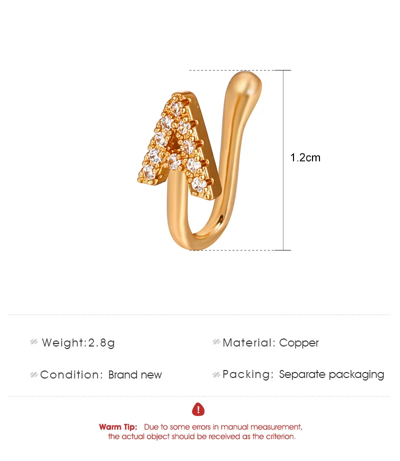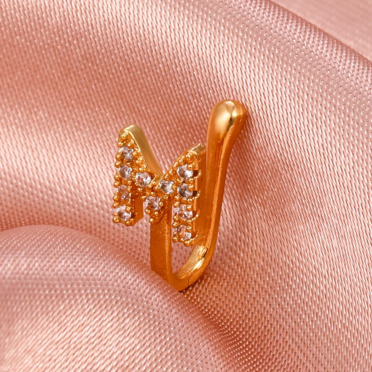 Women A B C D E F M S T-Z Crystal Letter Crystal Nose Clip Ring Fake Septum Piering Body Jewelry Non Perforation Nose Ring Stud