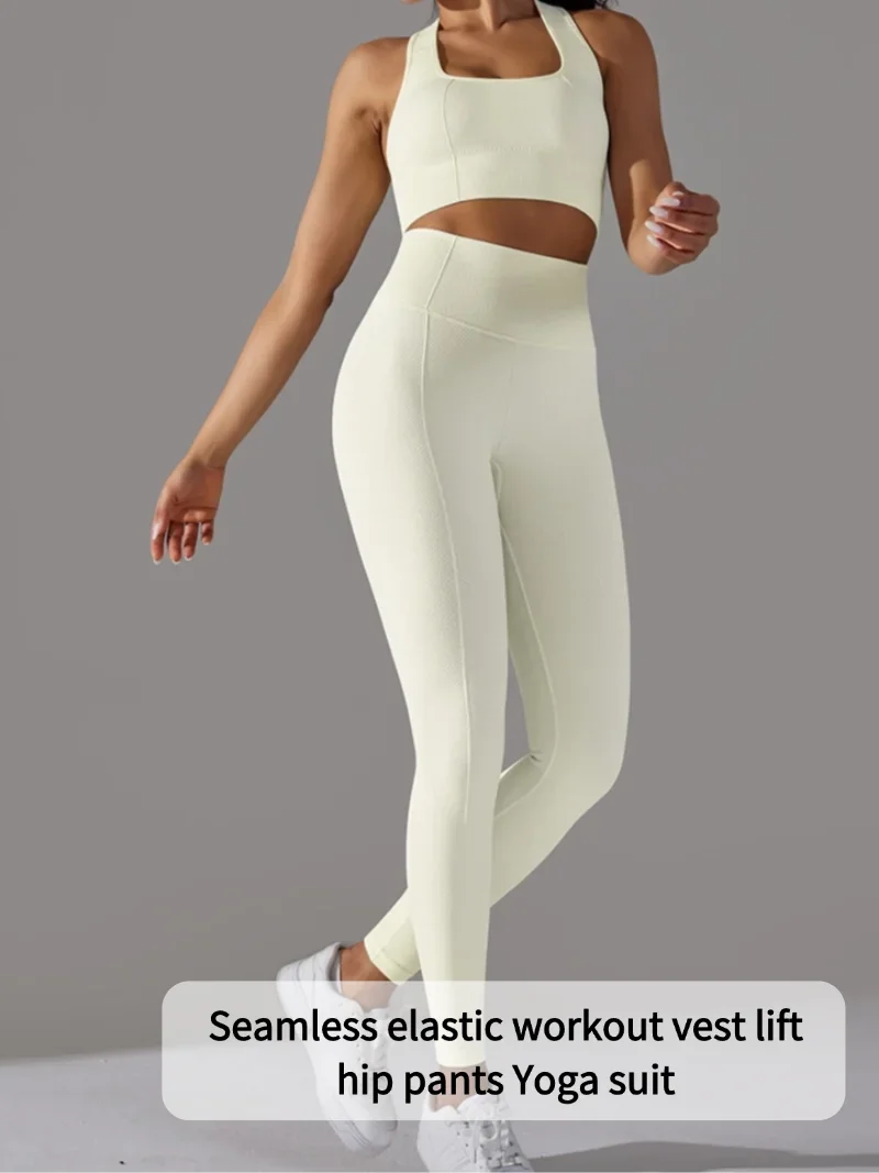 2 piece Sets Womens Outfits Yoga Clothing Womens Sports Leggings Sexy Yoga Pants New Workout Elastic Vest for Women Gym Sets
