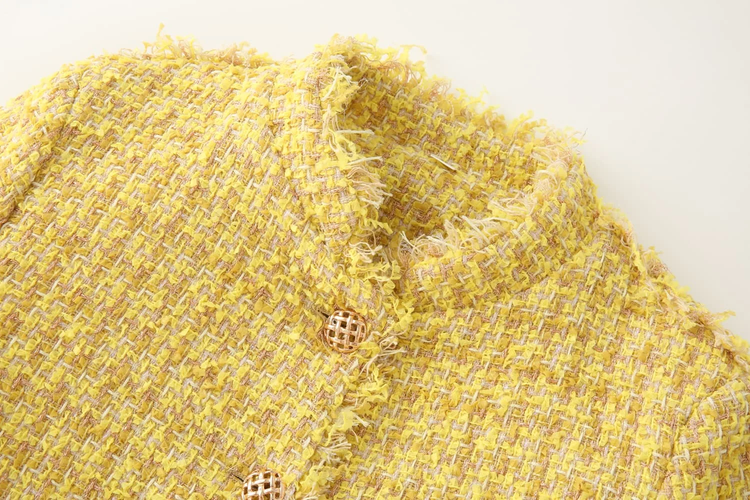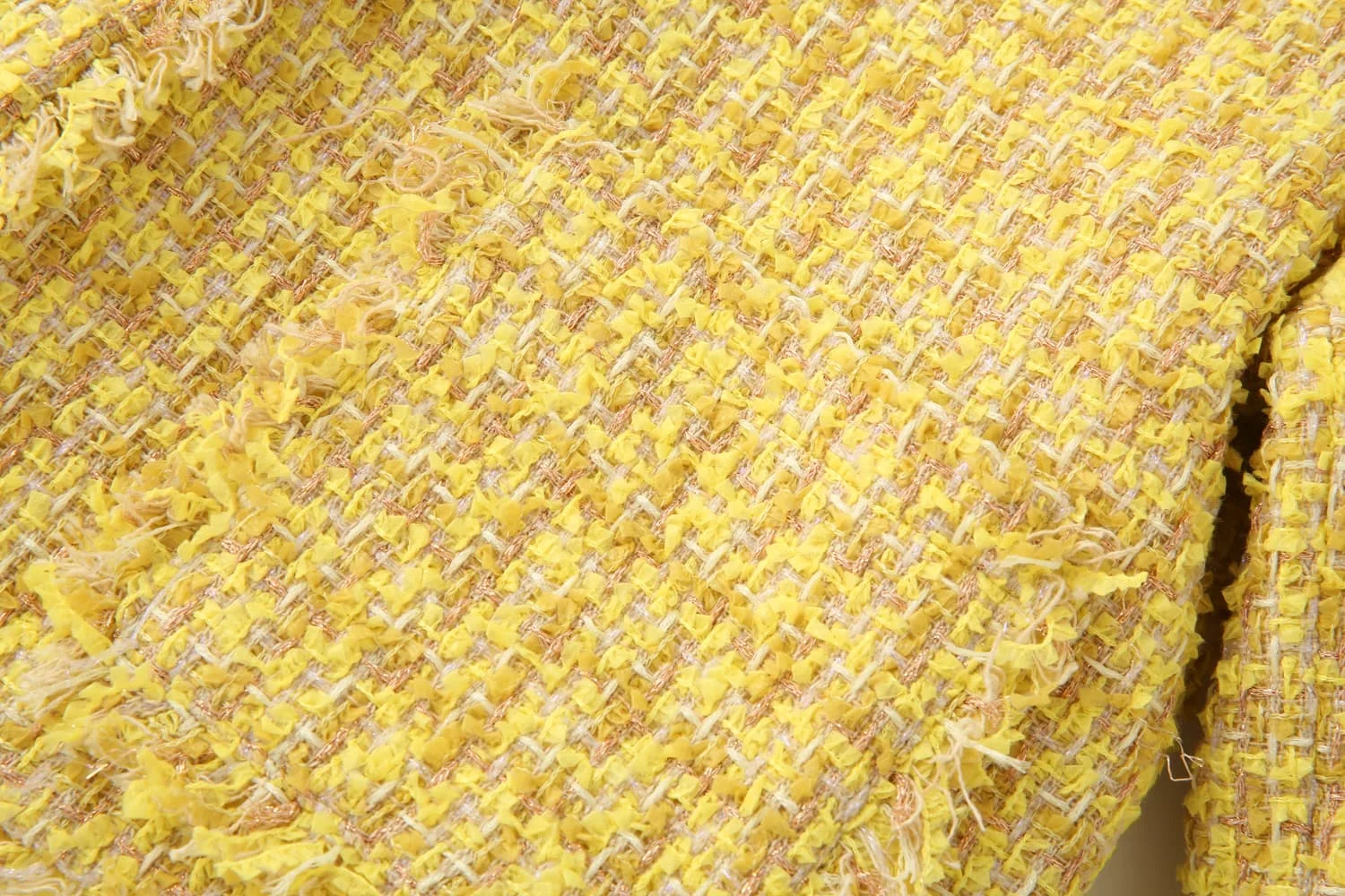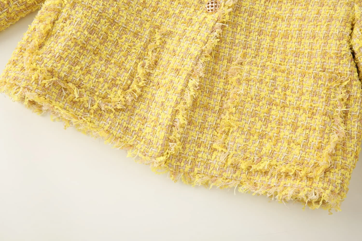 2025 Women Woolen Jacket Autumn Lady Outwear Woman Elegant Yellow Tweed Short Coats O-Neck Single Breasted Long Sleeve Jackets