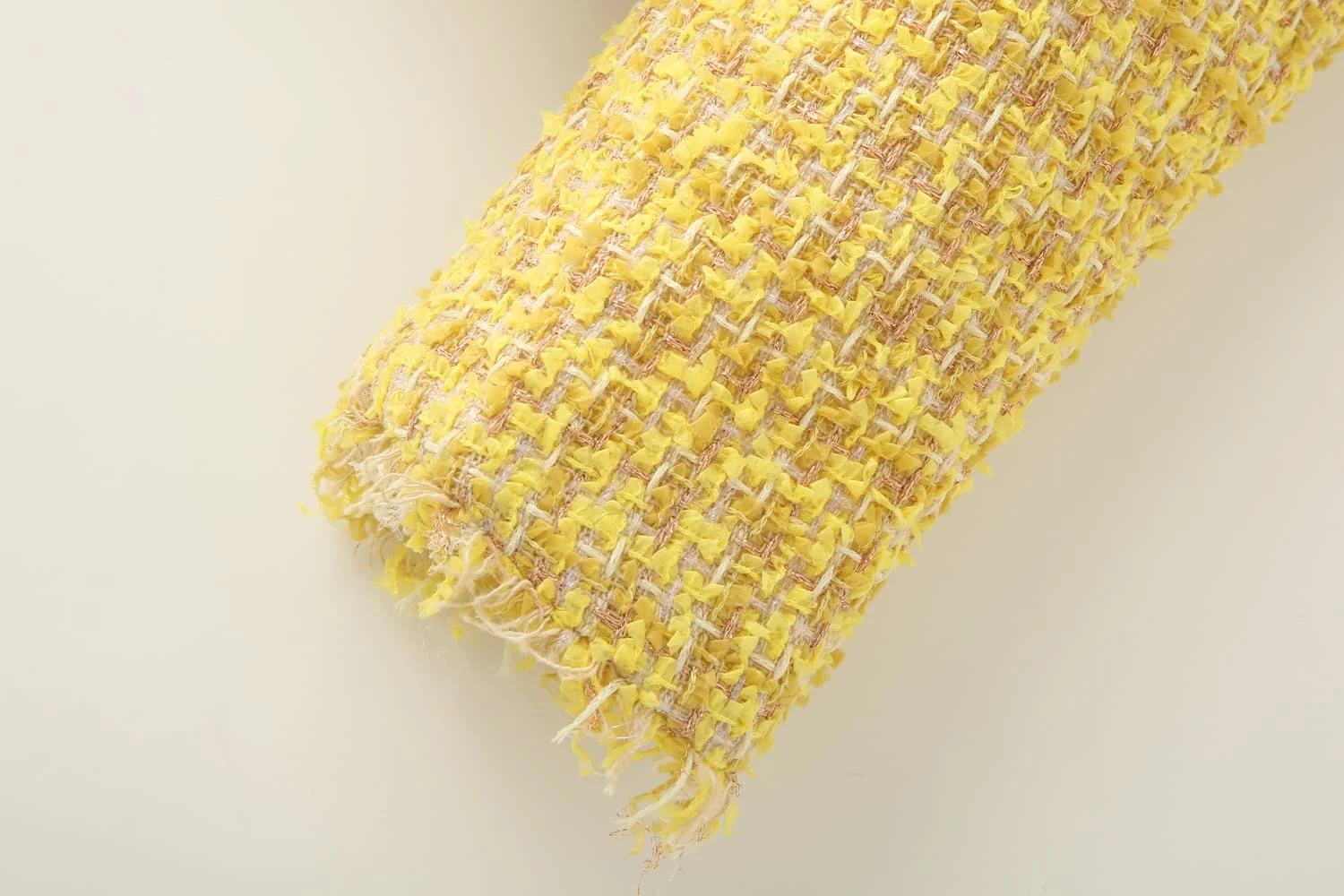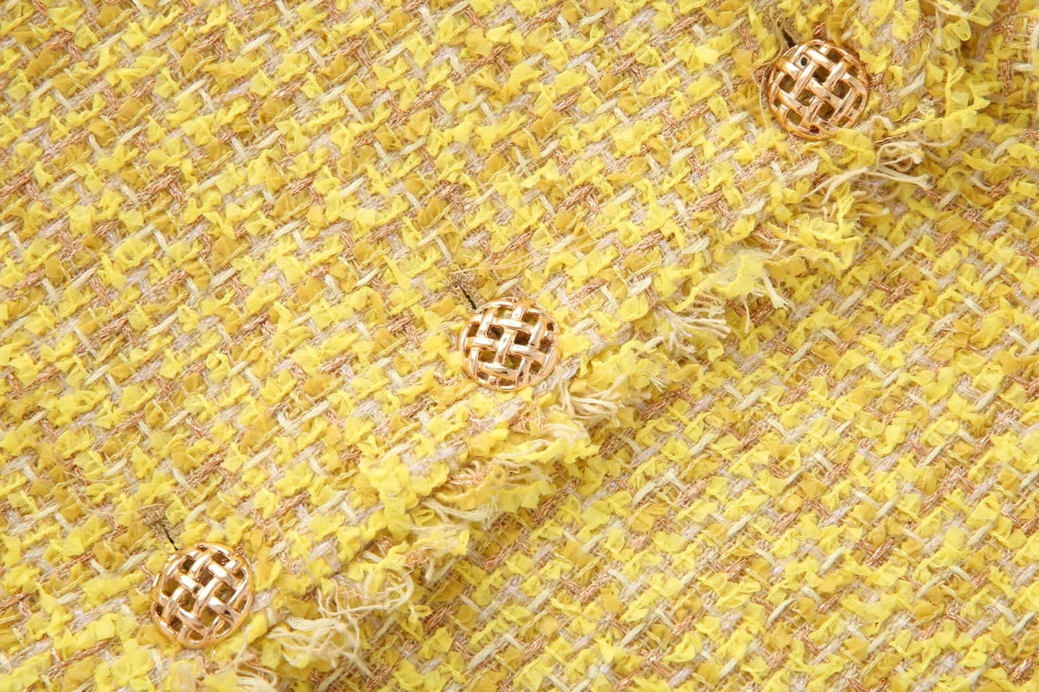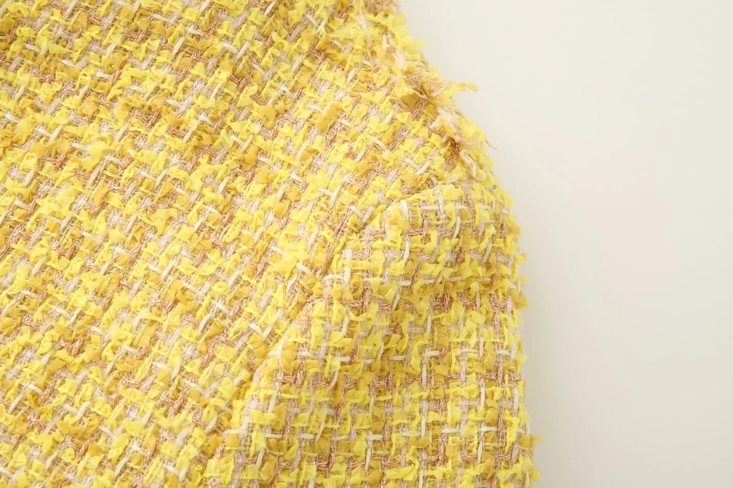 2025 Women Woolen Jacket Autumn Lady Outwear Woman Elegant Yellow Tweed Short Coats O-Neck Single Breasted Long Sleeve Jackets