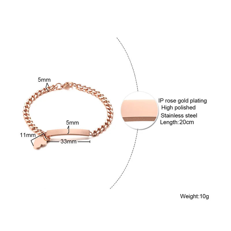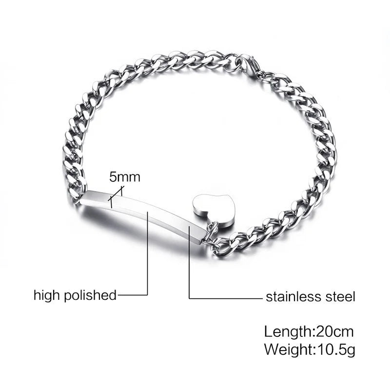 Free Custom Name Bracelet for Women,Stainless Steel Link Chain Bracelet,Elegant Personalized ID Bar Bracelets,Chic Jewelry Gifts