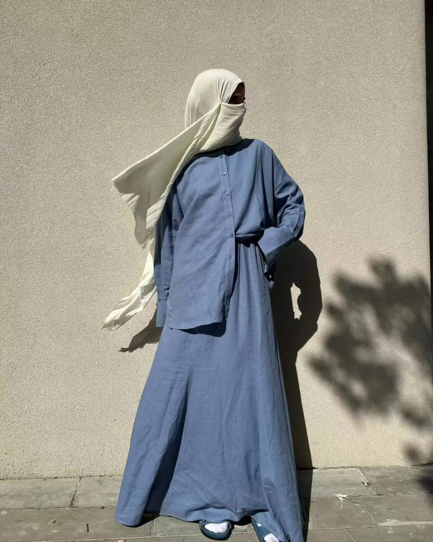 Muslim Women 2 Piece Sets Shirts Skirt Outfits Single Breasted Morocco Dubai Islam Blouse Long Skirts Suit Saudi Modest Ensemble